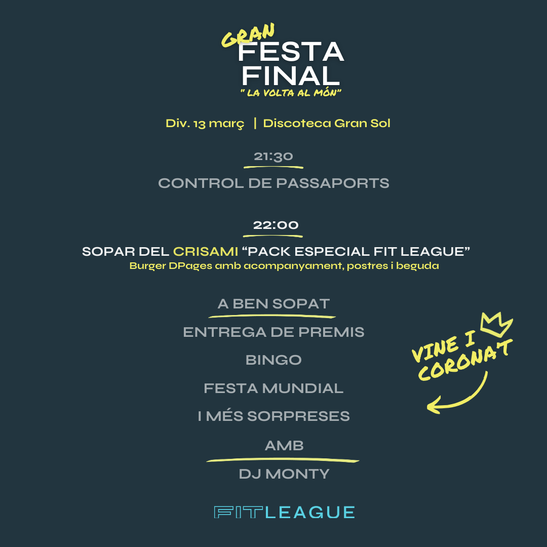 Participa a la gran festa final de la Fit League. Compra l’entrada a recepció.